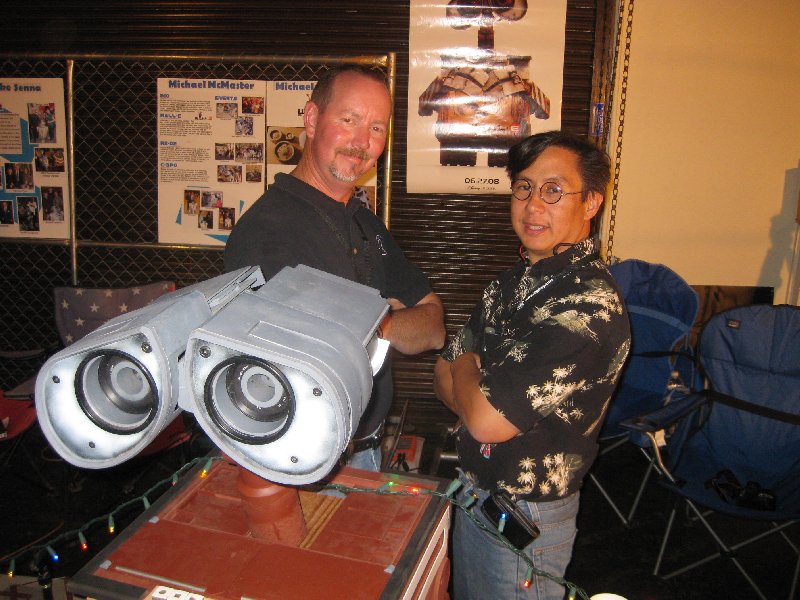 WALL-E & R2-D2 appeared for the 2nd year at Riverside Robotics Society's Robot Expo at the Woodcrest Community Library. One of the event's goals is to inspire children to pursue careers in math, science, or engineering. Exhibits included robot soccer, Terminator robots, a Lost in Space Robot, a singing robot Elvis and many others. Mike met fellow robot builder, and the voice of the Tonight Show, Wally Wingert. Thanks to Victor Franco for driving R2-D2 & sharing his photos.